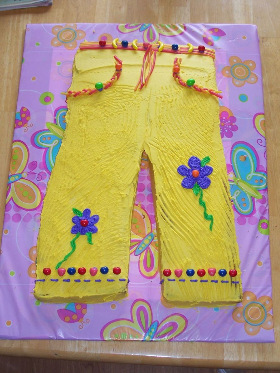 I got this idea from another picture. I made this for my daughters 9th birthday. It's just a marbled cake and I used BC..tinted. The belt is used from string licorise and runts. Thought it was cute.