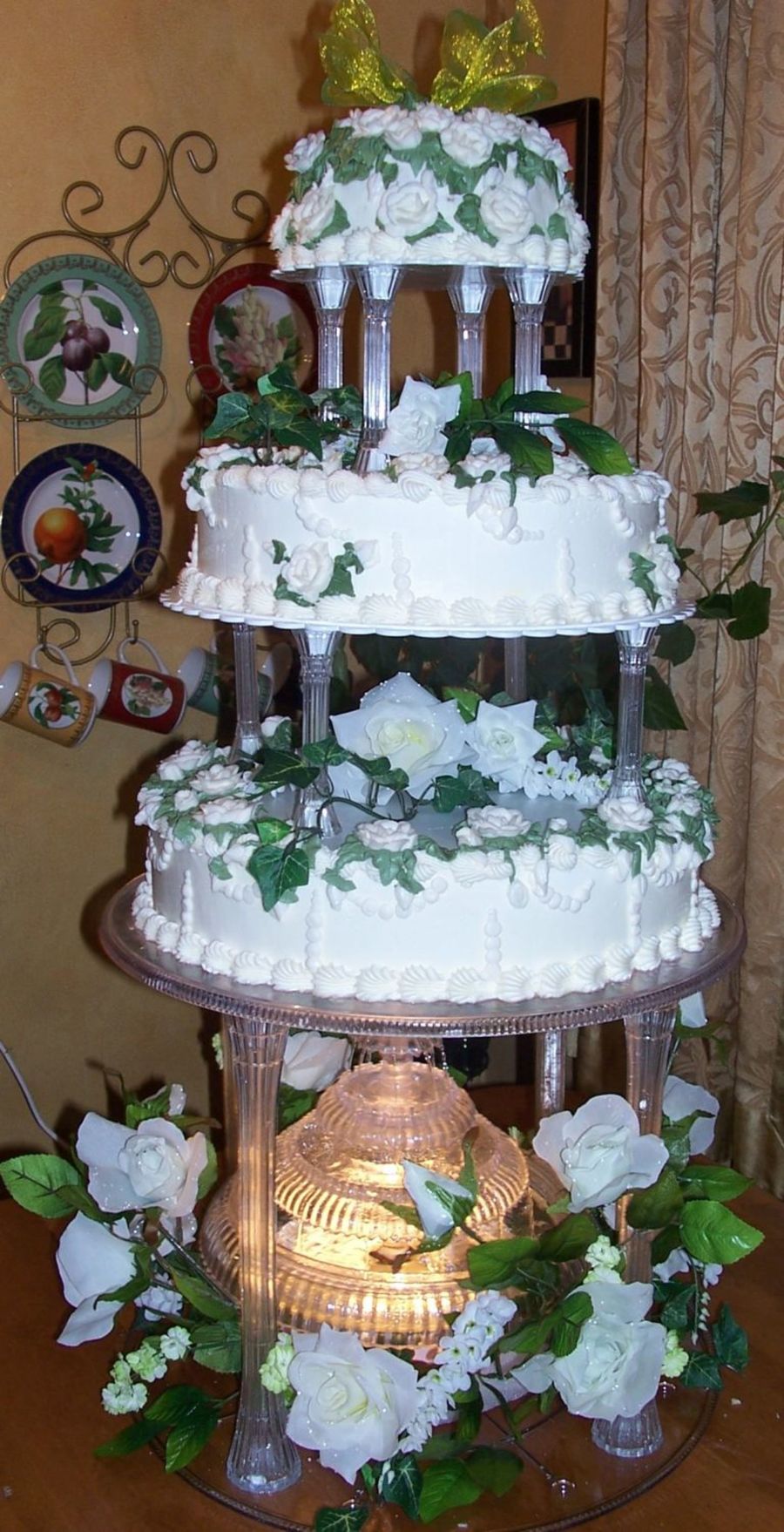 This cake is similar to one I put on here a year or so ago- the bride wanted white and green only...A lot of work! she didn't want a top either, just for me to figure something out...