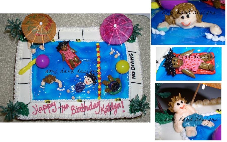 This cake was so much fun, and quite easy. My buttercream kids are a little "rough" but I still think they're cute. Mom said her girl loved it, and it got me two other orders, so I guess they aren't too bad :) Everything is edible except the trees, umbrellas and beach balls. Half chocolate/half yellow/buttercream icing.