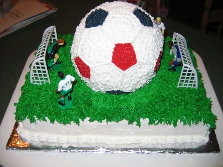 Double layer, half white, half choc. Soccer ball is Duncan Hines yellow cake mix with reduced oil for a firmer texture. (Everyone said this was the best yellow cake they had ever eaten.) All buttercream icing. The soccerball is by far the most difficult cake I've done. I was pleased with the outcome though.