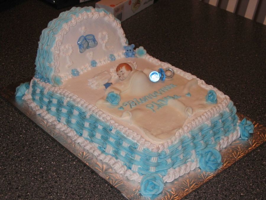 this was for sale. the blanket was with fondant MMF with Ronda and the cake was cover with buttercream icing.