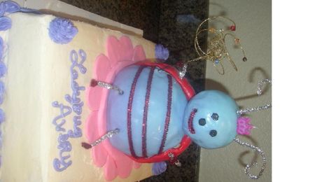 Made for my Tae Kwon Do instructors going away party. 14" Round, 3 layered. Marble Cake (killer chocolate & my vanilla cake). Layered with chocolate ganache and sliced fresh strawberries (soaked in brown sugar and lemon juice overnight). Topped with French buttercream.