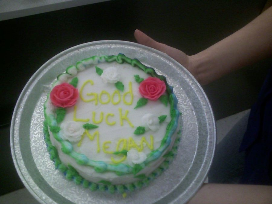 This is the first cake i ever made. Not tooooo bad but not the greatest either. She loved it so i guess thats all that matteres. She said the cake was excelent but the frosting was kinda sweet. I'll have to figure out how to fix that. you can see at the top border, my color was very bold, and then thinned out to almost nothing. Better luck next time