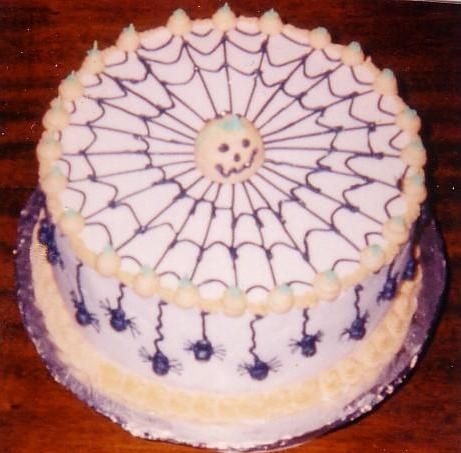 Great halloween cake! I love the look of the top and the spiders on the side are creepy (just right for this holiday)! Nicely done!