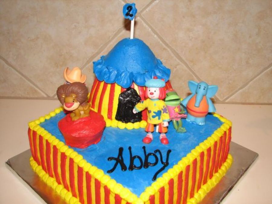 This was to be similar to another Jojo cake for another customer; but this customer wanted blue tops and the tent to match the kids cups at the party. and she supplied the figurines.