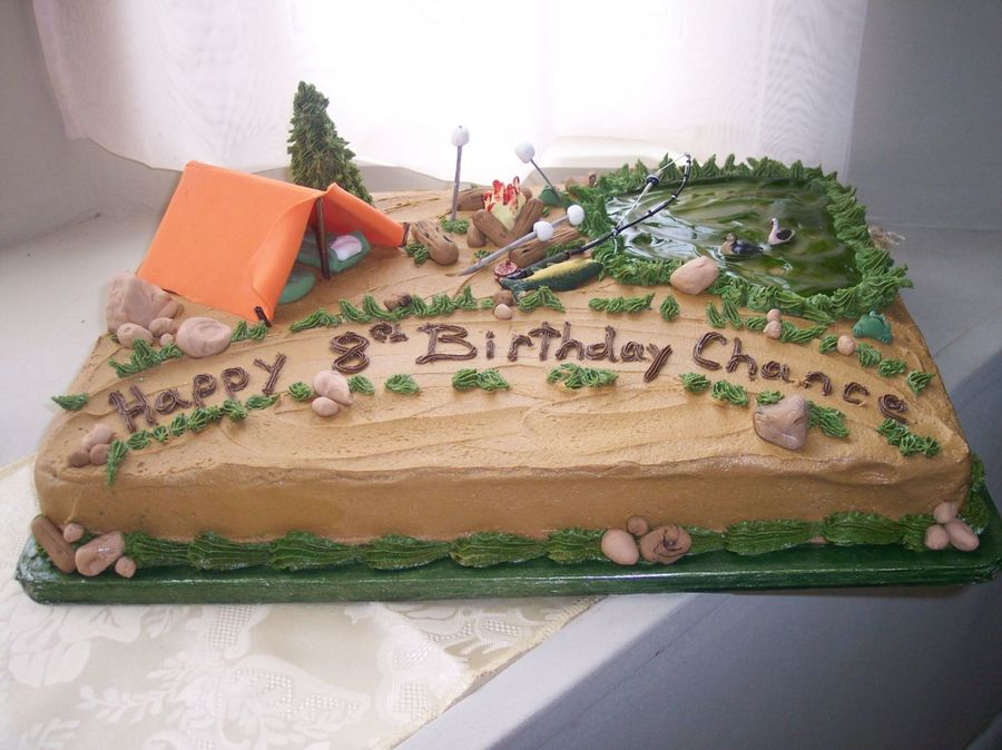 I can see the sleeping bags, the whole cake is really cute, I just love the ducks in the pond
