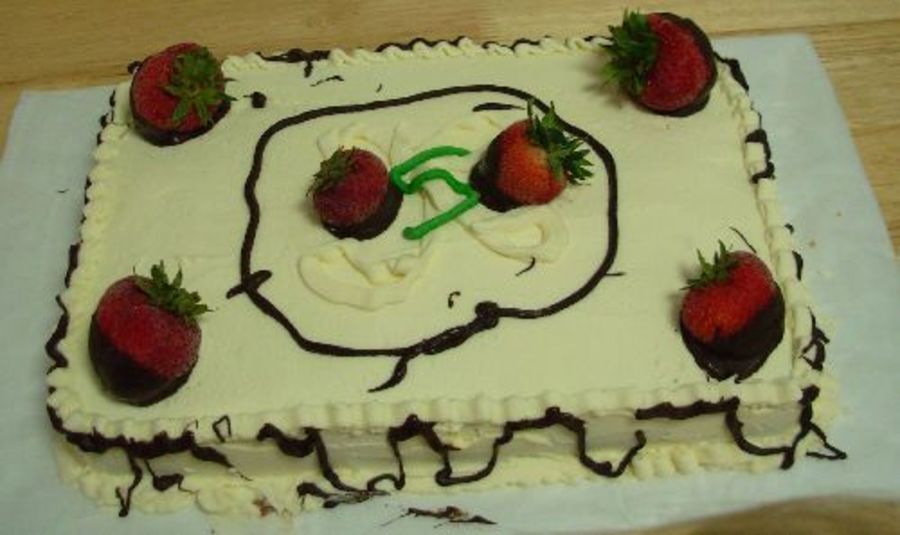 this cake was BC strawberry boxed cake with butter cream icing and melted chocalate chips. i saw LisaMS's chocalate cake again.