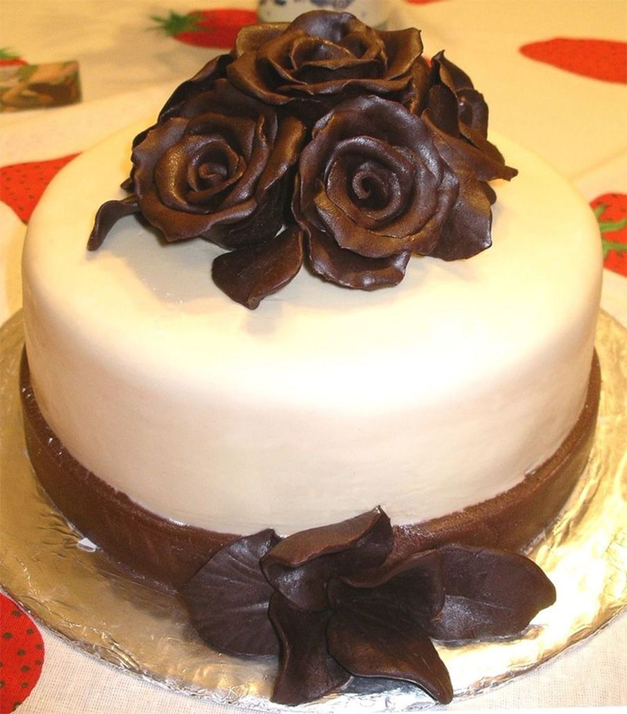 Did this one for my husband's co-worker for a thank-you. He's a chocolate fanatic so I decided to try chocolate roses. They were fun to do; would have been very easy if only I don't have HOT hands. Wearing gloves helped but I still had to work very fast which was a bit difficult for a first timer :) The cake was chocolate fudge filled with Grand Marnier chocolate truffle ganache and coffee buttercream. Covered with fondant that was infused with espresso but the color didn't show in the photo.