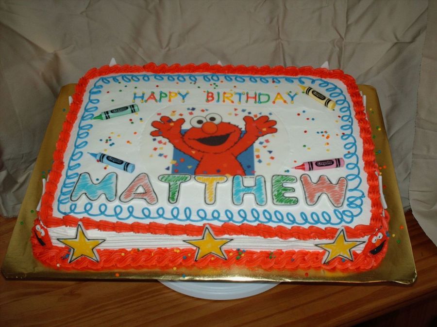 Edible image of elmo and fondant stars and letters colored with Wilton edible pens and the rest is buttercream.