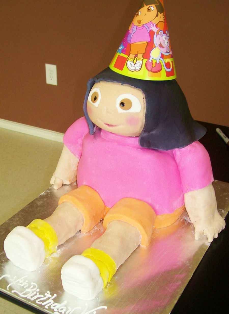 Okay..so I had posted a forum that asked for advice on how to do a 3D Dora and now..here is the result. Beign my first attempt I am really happy with it...I was so happy with it that it scared me last night when I was cleaning up the shop and from the corner of my eye she was just sitting there..lol. Now I know what I need to do next time. Oh okay everything is edible exept the hat (its to hide a dowel that would come out anymore to resize..oops) comments suggestions appreciated!!!