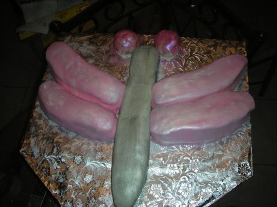 This was for a co-worker who was doing her nursery in dragonflies. White choc cake strawberry filling all mmf
