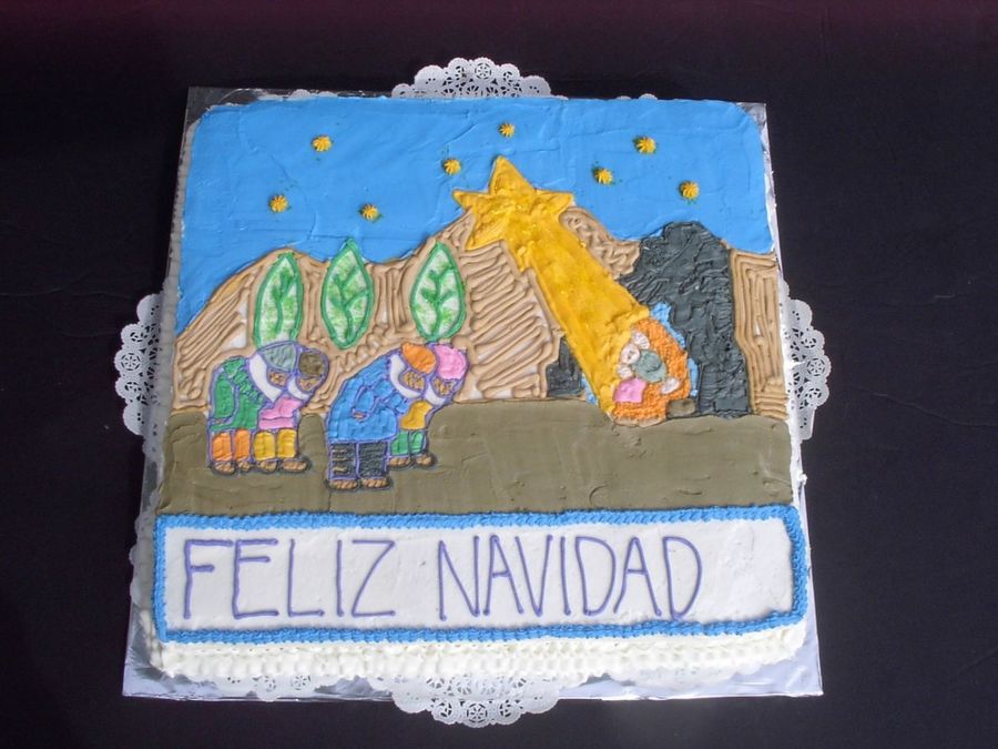 I made this cake for the christmas party at church. Its chocolate cake with buttercream icing.