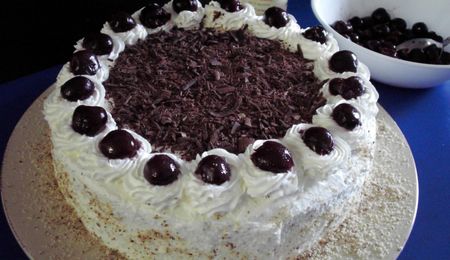This cake is for 120 people made with vanilla sponge cake and filled with strawberry marmelad. The icing is buttercream and the additional decor is plastic grapes and wheat.