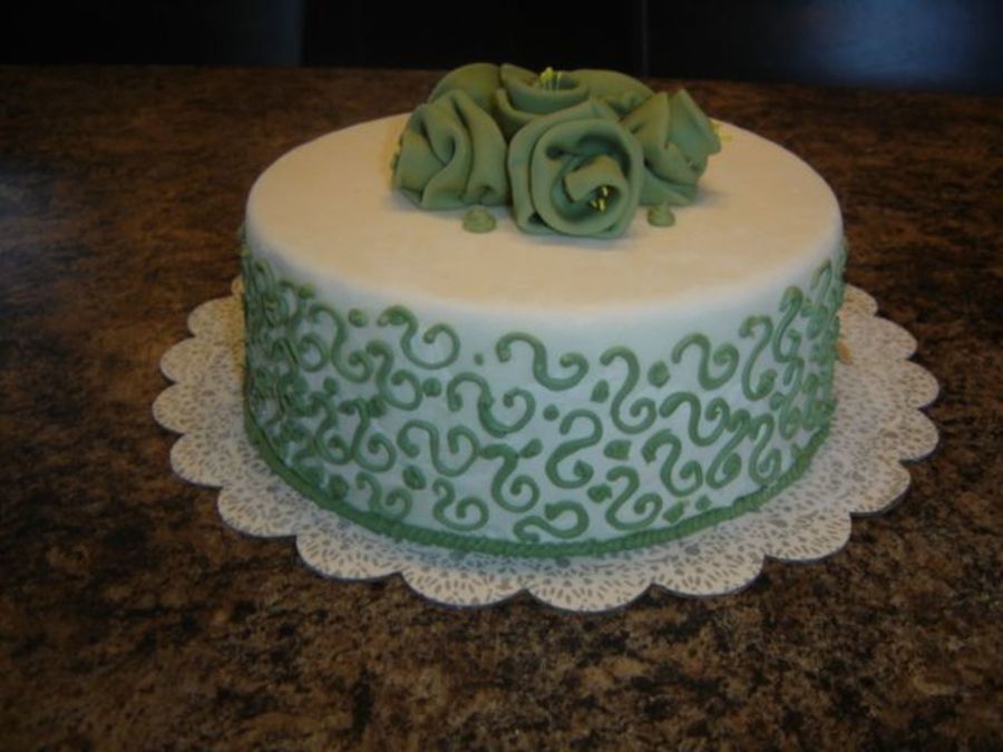 I did this cake on a dummy just to get some practice. All the scrolls are free hand but I learned it would probably work better with a pattern of some sort. It however turn out alright if I might say so myself :)