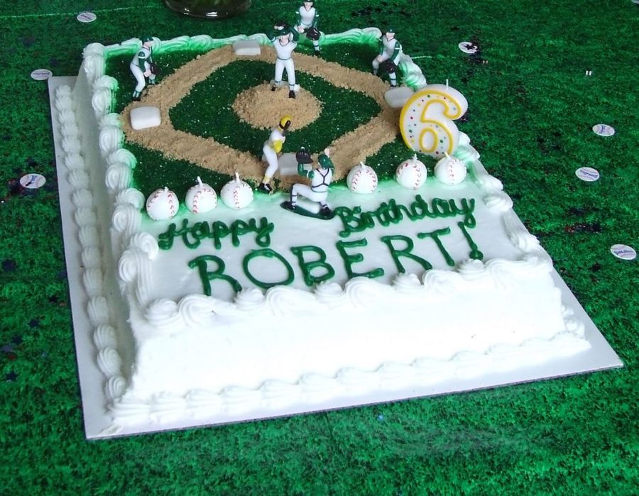 Green sugar mixed with green cake glitter for turf, fondant for bases. Graham cracker crumbs for dirt.