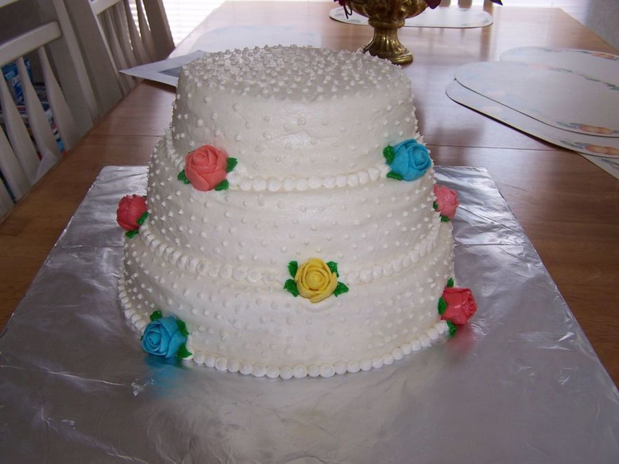 French vanilla cake with Buttercream Dream icing. Starburst Roses. I made my SIL a cake with Starburst roses and took it to her work place and one of her employees saw it and wanted the Starburst roses for his wedding cake. He actually ordered the cake not the bride! He loved it and so did his mom. I really need some opinions whether they be good or bad. Thanks for looking.