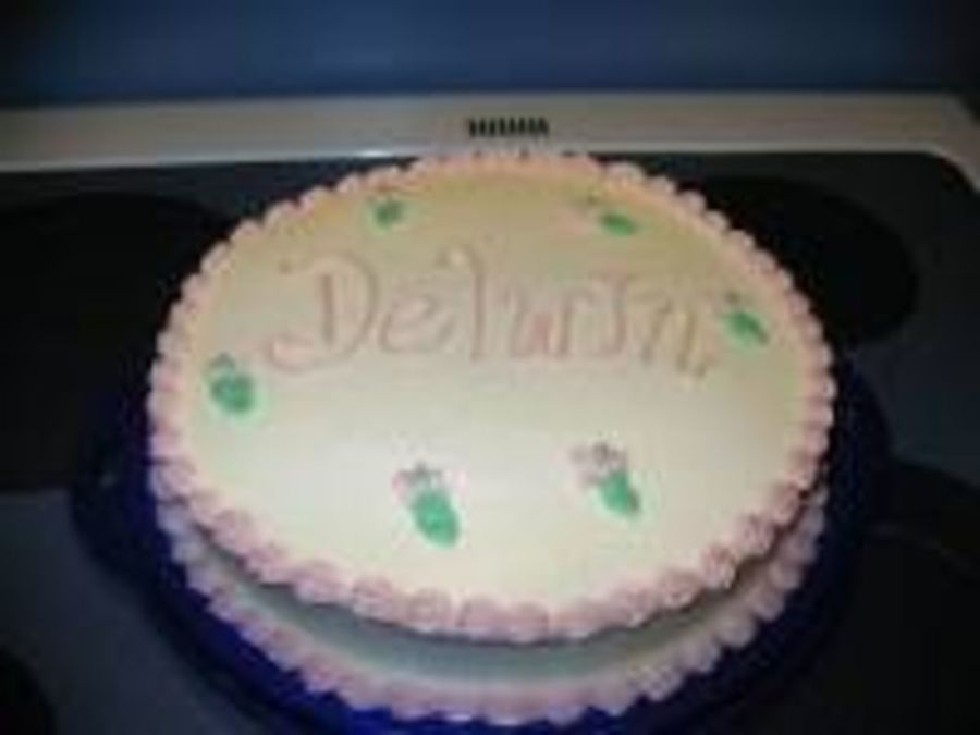 This is the cake I made at my very first cake class. We learned to ice, basic border, and drop flowers! It is iced in all buttercream.