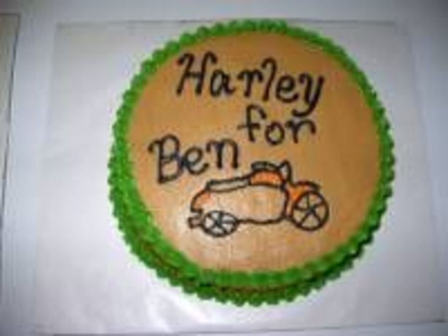 I think you did a great job on your cake. Your writing is very good and I think your harley looks like an older version my dad had. Congratulations on your first! Well done.
