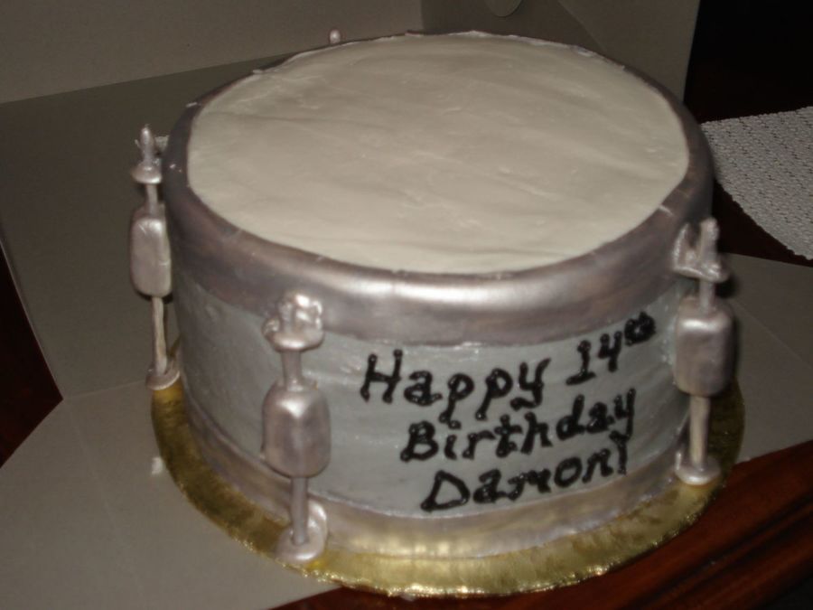 This was my attempt at making a cake look like a snare drum. I wanted to have e all the parts and pieces made days in advance so they could air dry, I I jsut didn't have the time needed to do it. It came out differenly that what I had imagined, but the 14 year old loved it, so I guess that's what matters. His mom placed a new set of drum sticks on top of it for added effect :)