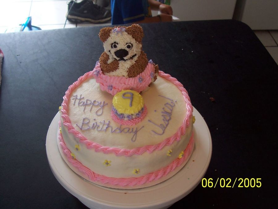 Here is a cake i did today. white cake w/ vanilla pudding in the middle!!