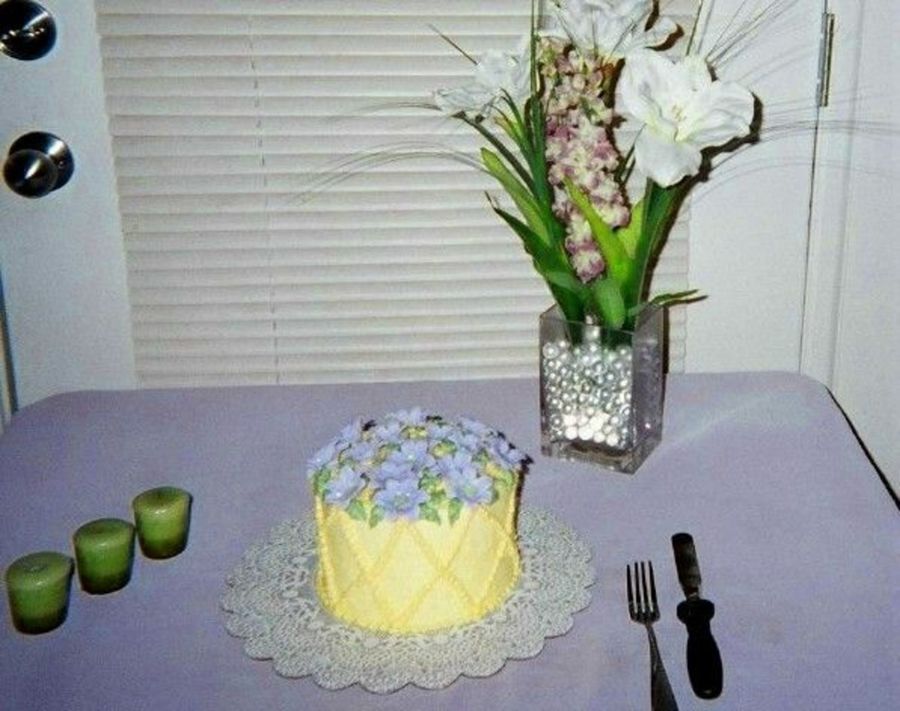 This is a dummy that I did just for practice and fun. The icing is buttercream and the flowers are royal icing. I'm still fairly new at this...Thanks for looking!