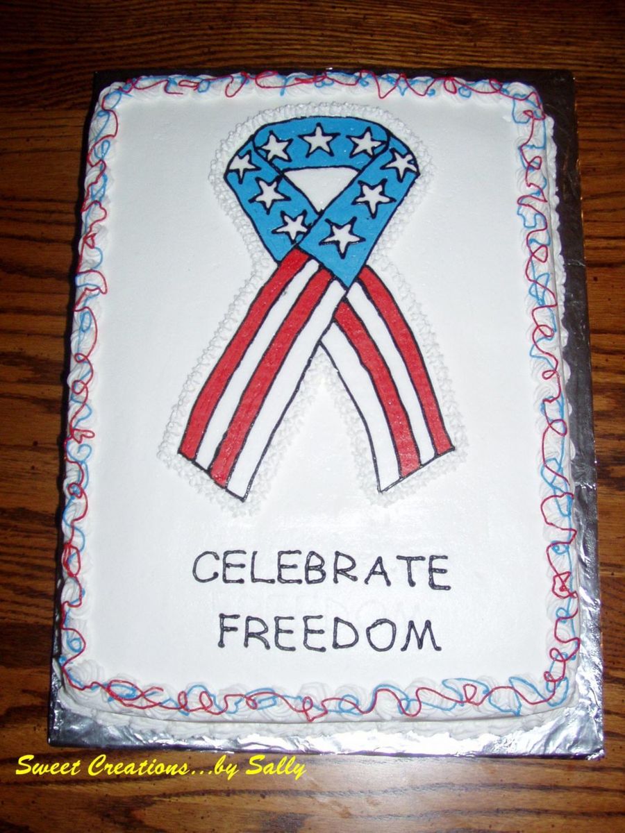 Cake for July 4th gathering. 11x15 sheet w/BCT. I made a press using piping gel on wax paper and let it harden to do the lettering. Worked well.