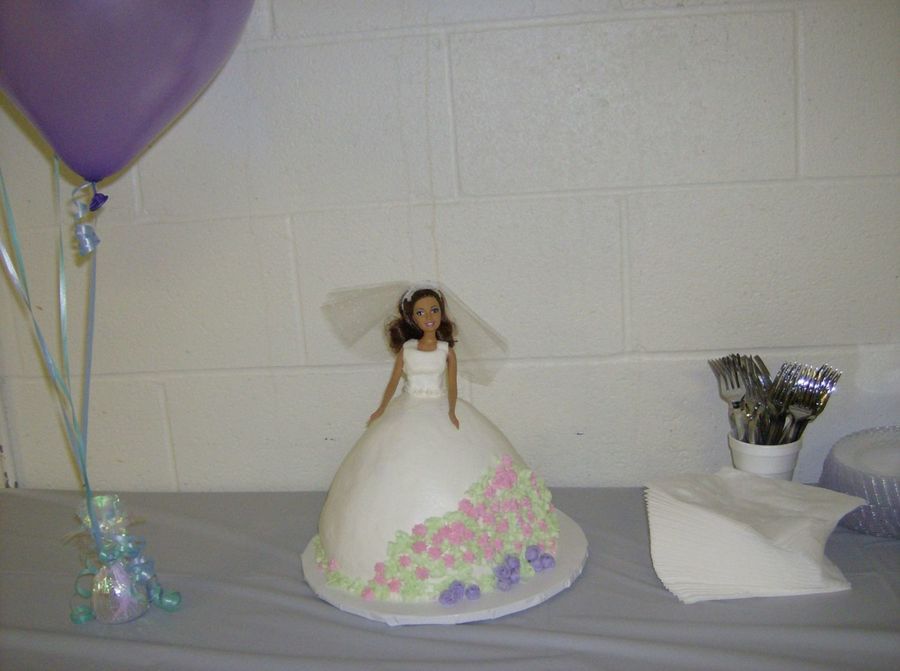 She is a marble cake with ganache filing. I used 2 10" pans, an 8" and a 6" and carved. BCiced