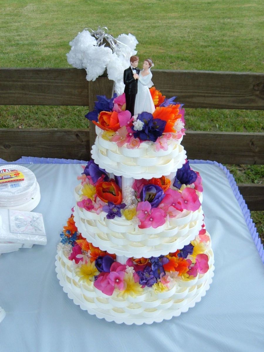 steffla on 8 Jul 2006 , 12:32am I love this cake and I cant believe it's your first!!! What kind of flowers are they? Is the main cake buttercream?