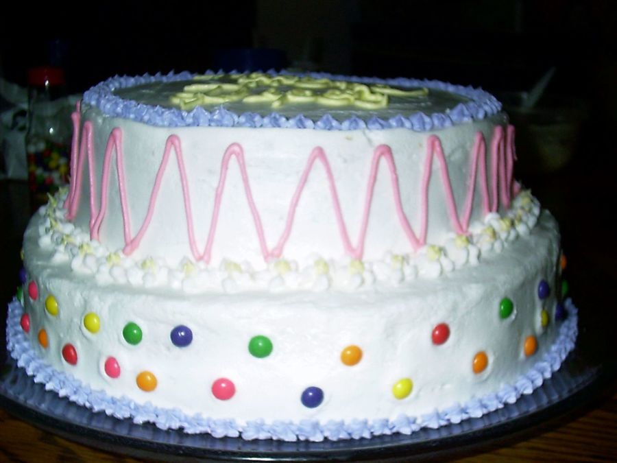 I was just playing around....I ended up with this! The girls at work loved it. Im not sure if they really liked its decoration or was just so happy they were getting to eat it! LOL I think it would make a cute birthday cake?...