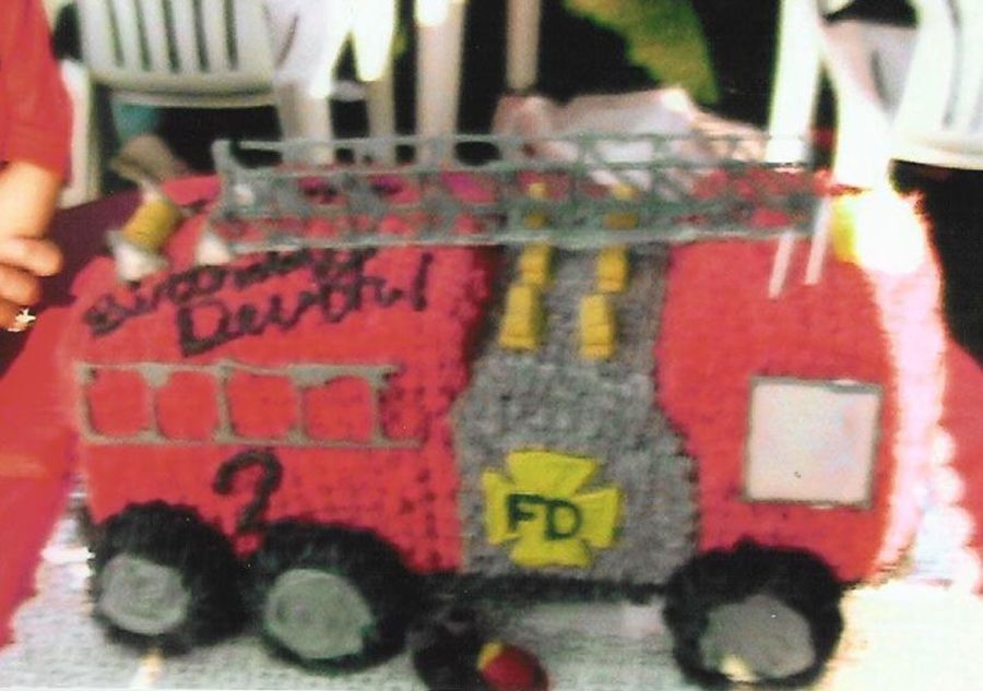 made this cake for my nephew's 2nd birthday! chocolate cake with strawberries and whipped cream. Actually ths was the second one I made because the first one fell apart, but it turned out ok. Hoses are fondant, Ladders royal icing. This was the only good picture I was able to get, sorry.