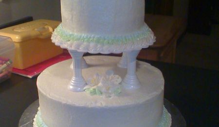 My very first wedding cake. bc frosting and mmf hearts