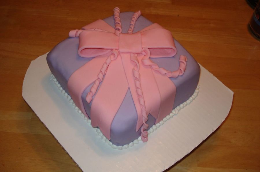 Yellow cake with strawberry cream filling. This cake was my first attempt at fondant with the Wilton course. The fondant is flavored with cherry.