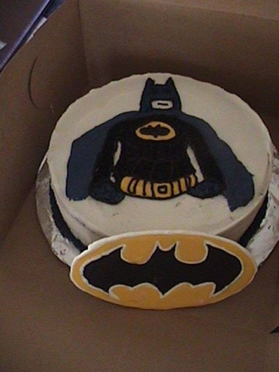 MsRhonda on 8 May 2007 , 10:25am What a neat idea putting the bat signal around the outside of the cake! Nice job!