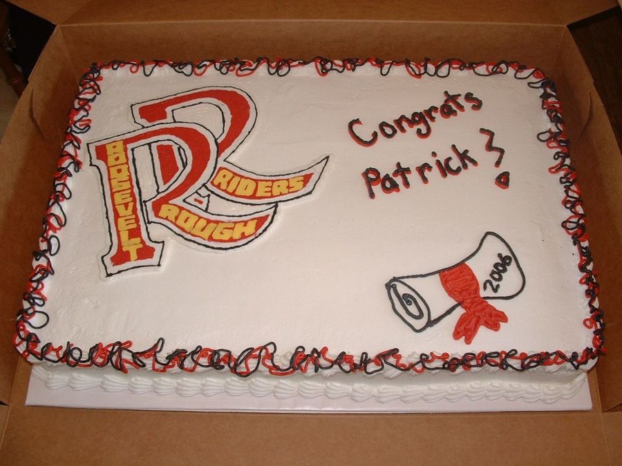 This is one of the cakes I made for my sitters son's grad. The school emblem is a FBCT. Really had fun with this and they had 2 1/2 sheet cakes, and none left!