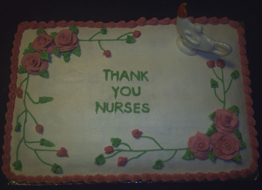 Very pretty cake! Your roses and vines are really pretty. I am sure the nurses appreciated this cake a lot!