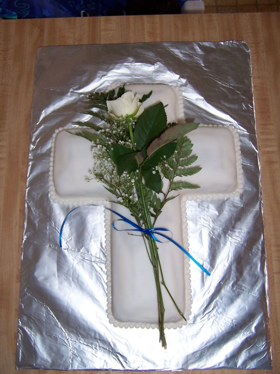 This is the cake I made for my son's baptism. White/chocolate marble covered in white rolled fondant. The white balls around the base are white fondant. Thanks for looking.