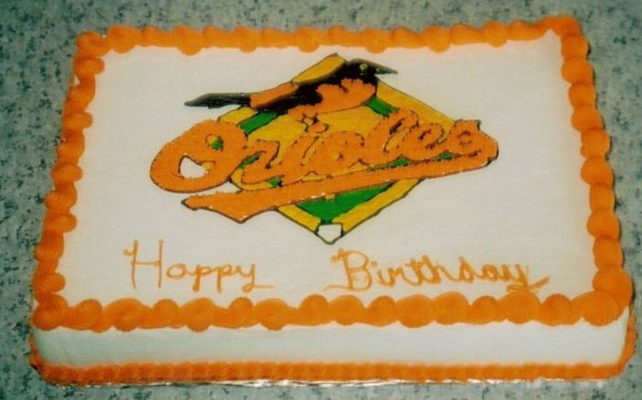 Orioles cake for my dad who loves baseball and the orioles. All buttercream.