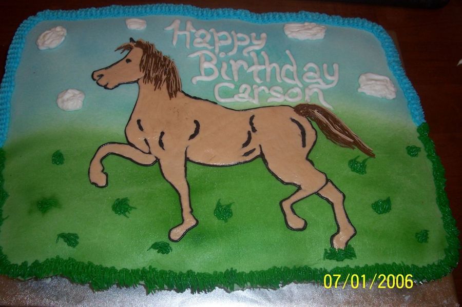 mom3 on 14 Jul 2006 , 3:50pm I like this. Is thehorse free-hand. It looks as if your sprayed the background. Great job your icing looks very smooth. :D