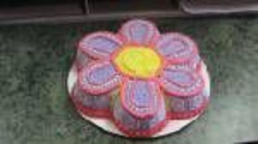 Co-worker's birthday cake- is a variation of a wilton dancing daisy cake. It was fun, and she loved it.