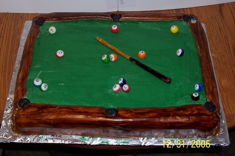crisseyann on 11 May 2007 , 3:25am Aweomse pool table cake! I need a reason to make a cake like this....your is super cool. :D Oh BTW, did you scratch? Your cueball is missing. LOL