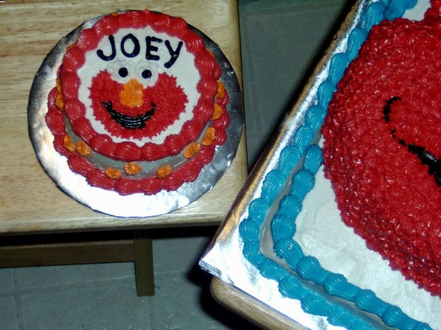 here is the smash cake that went with the 1/2 sheet elmo cake. This is a 4' round
