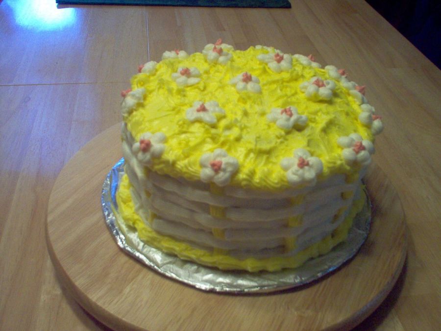 This cake was for a church brunch. It's a plain lemon cake mix, decorated with baskeweave