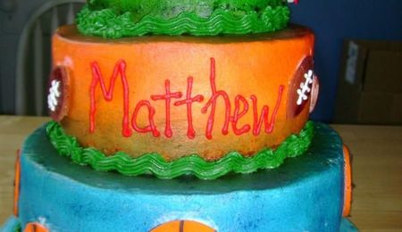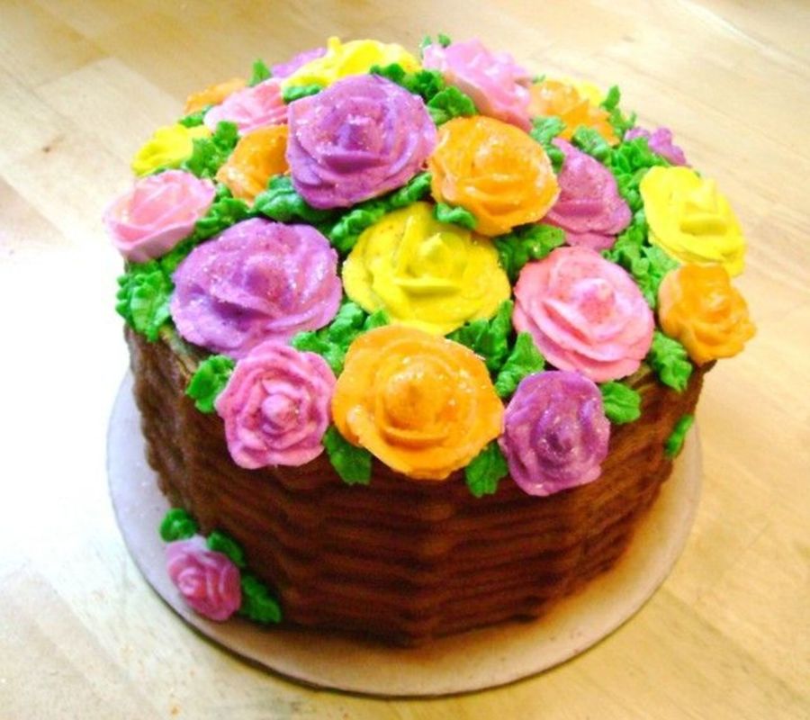 3 - 8" layers, chocolate, strawberry & yellow ... filling, icing and roses all buttercream.
