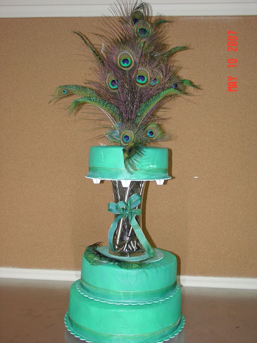 8, 10, 12 inch tiers with airbrushed buttercream and peacock feathers