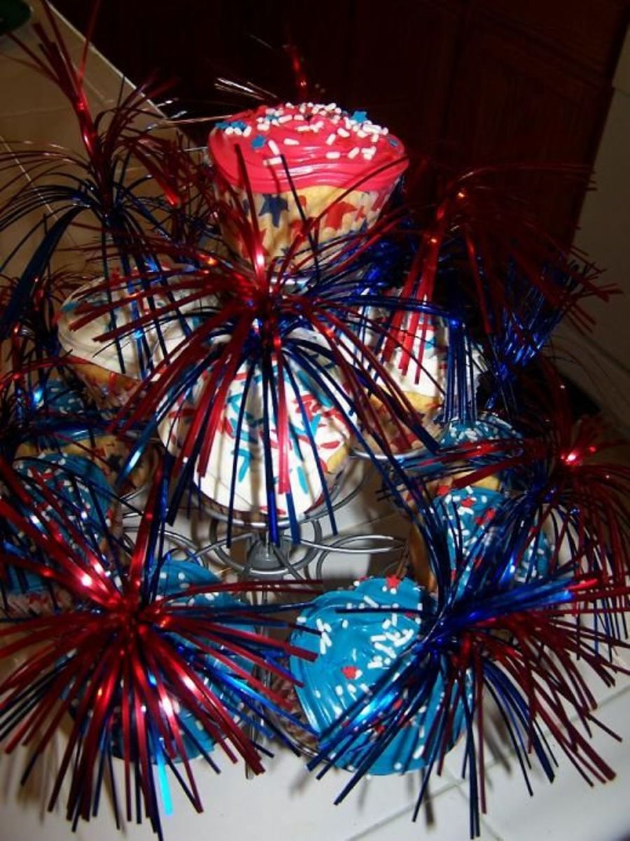 These were really fun to do. I bought the Wilton cupcake holder for 12 cupcakes...kinda wish I had the bigger one now. Made these to take to a family get-together. French Vanilla with vanilla frosting. I colored red, white, and blue, added sprinkles and Wilton firework picks. My family loved them.