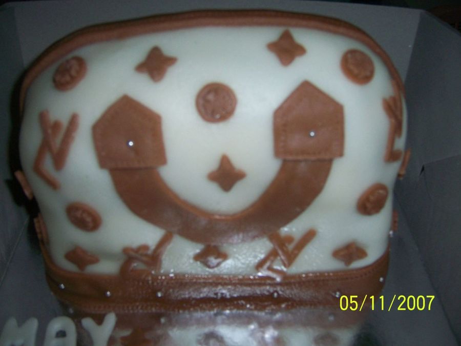 A commissioned cake for a lady who loves LV bags. She was told that she'll be receiving a LV bag but got the surprise of her life when she received the edible kind... This is the reason why i've been asking help at the Forum. thank.