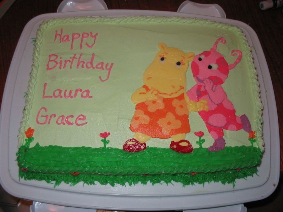 dandelion on 12 May 2007 , 8:52pm backyardigans! so adorable! your buttercream has a lovely sheen to it and your borders are wonderful.