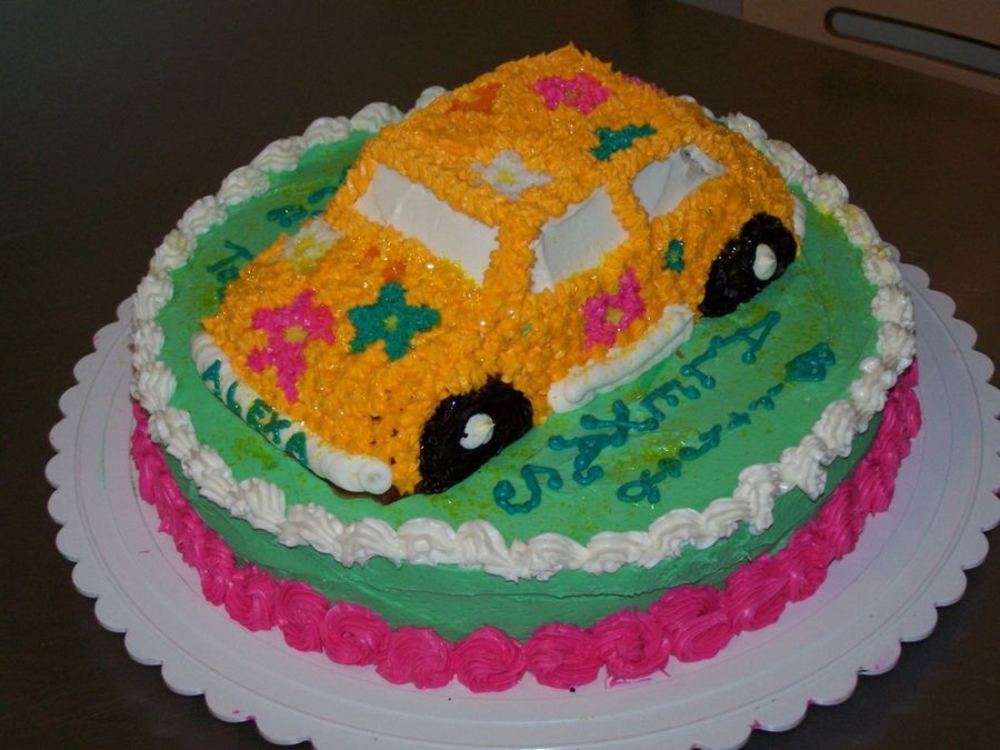 This was a quickie for my daughter's family birthday gathering. All buttercream, white cake on the car and chocolate torted with fudge below for variety! Keepin the kiddies happy!!