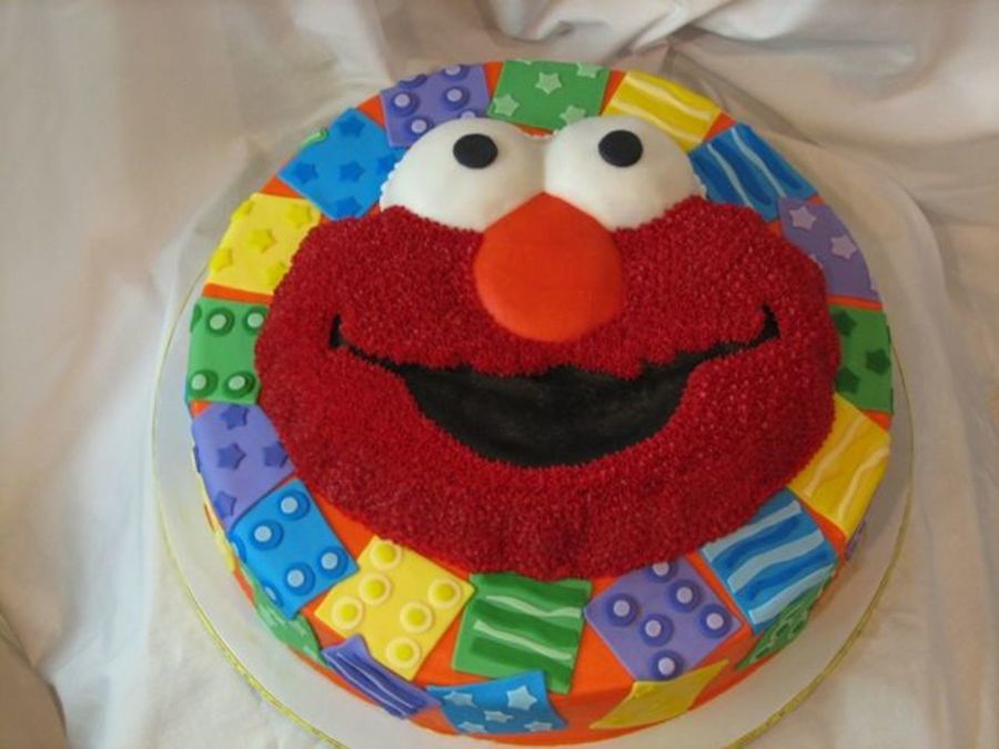 This cake was done for my sons 2nd birthday. He LOVES Elmo. The background cakes was done to match the napkins and such. The whites of the eyes and the nose are buttercream. The pupils are done in fondant. The bottom cake is a 14" round cover in buttercream (the orange), and the embelishments are done in fondant. I had to mix 12 colors of fondant for this cake. 3 different shades of the four colors (purple, blue, green and yellow).