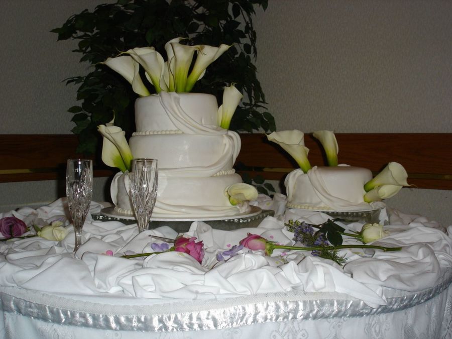 CarolAnn on 19 Jul 2006 , 5:07am Your fondant and drapings look very nice! Unusual presentation with the lilies. Were they stuck directly into the cake?